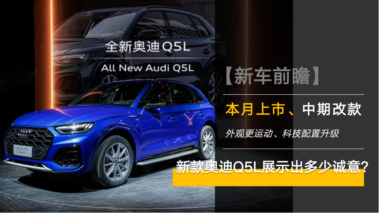 如果您的预算在30万左右,想要购买一辆豪华的中型SUV,那么 奥迪Q5L(配置|询价) 一定是你绕不过的车。奥迪Q5L作为全球首款加长轴距的豪华中型SUV,凭借着出众的颜值、舒适的驾乘体验,成为其细分市场中销量不错的车型。数据显示,今年第一季度,奥迪Q5L共销售15270台,超过了同级对手奔驰GLC和宝马X3(配置|询价)。在今年上海车展上全新奥迪Q5L正式亮相,新车也将在5月份正式上市。下面我们就来为大家详细分析一下,新款奥迪Q5L到底有哪些改变和升级?